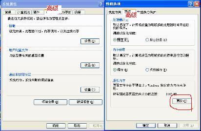 右击 我的电脑 然后点击 属性,最后看下图设置为有关值(自己物理内存的1.5--2倍,过大没意义!)。