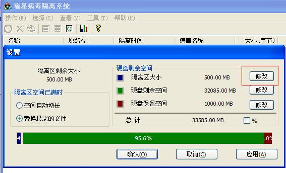 回复:请问为啥我的病毒隔离系统内什么都没有,怎么设置隔离区大小(内存256M)