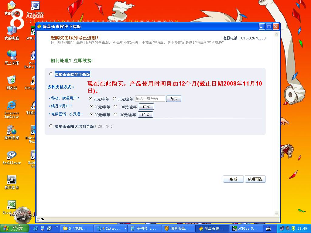 回复:瑞星杀毒软件下载版 怎么输入了几次序列号之后就再也不能输入了