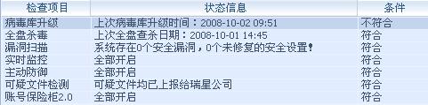 用瑞星杀毒软件进行安检,病毒库已经升级成最新版本。但条件却写着“不符合”,已经重新扫描和启动机器几次了,但还是这样,请问这是什么一回事?