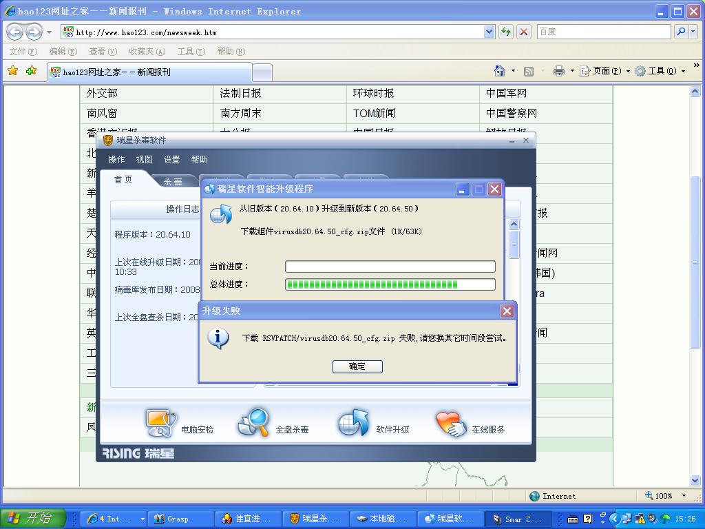 1.瑞星杀毒软件现在每天会更新3个版本,换其他时间段升级。