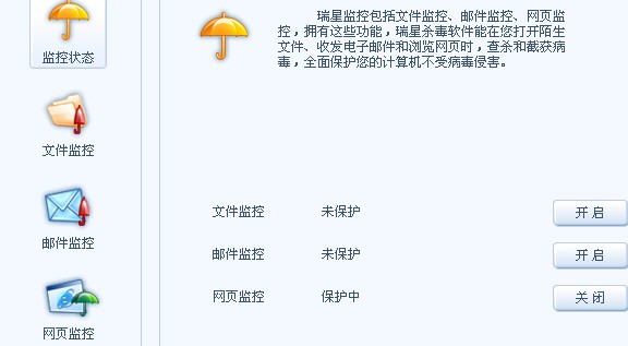 我的电脑和瑞星一直都是好好的,昨天下载安装了传奇世界后(盛大官网上下的),我的瑞星就显示邮件监控和文件监控关闭,而且怎么我都启用不了,然后恶意行为检测也关闭了,也打不开了,请问有没有知道怎么回事的吗?有没有人教教我呀?