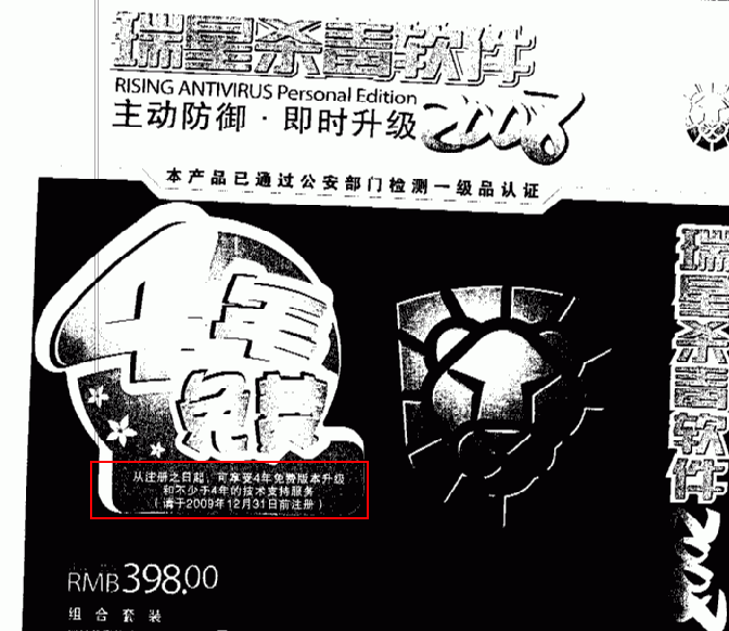 我是重庆的电脑商家.你们有没有发行过免费4年版的瑞星.我这儿有几套.昨天才进的货.上边写的在2009年12月份之前注册就能免费升级4年.