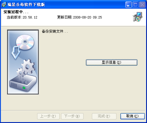 最近下了一个卡卡6.0,并通过它下载了瑞星2008(免费一年版),但在安装时却出现了维护模式的界面: