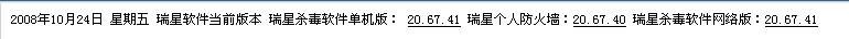 早上都升级到20.67.40版本了,中午15:40升级的时候版本却成了20.67.32了,怎么会这样啊?我到瑞星网站上看的最新版本应该是20.67.41,晕,出现这样的情况,瑞星也太不负责了吧。