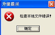 下载了瑞星20.70的更新补丁,安装的时候结果弹出对话框,提示“检测本地文件错误”,如图