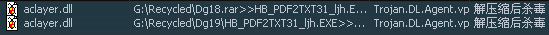 aclayer.dll G:\Recycled\Dg19\H8-PDF-2TXT31-Ljh.EXE>>...Trojan.DL.Agent.Vp   解压后杀毒