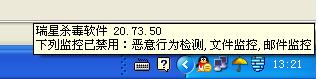 升级瑞星到最新版本,全盘杀毒,确认计算机中没有病毒的情况下,点击开始-程序-瑞星杀毒软件-添加删除组件-添加删除;将瑞星监控中心勾选去掉后点击下一步;修复完成后,重启动计算机,而后按照上述的操作将瑞星监控中心勾选在添加上,点击下一步即可。