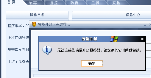 回复:我的瑞星不能升级了