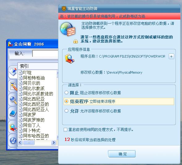 回复: 金山词霸与瑞星2009的问题(附截图)