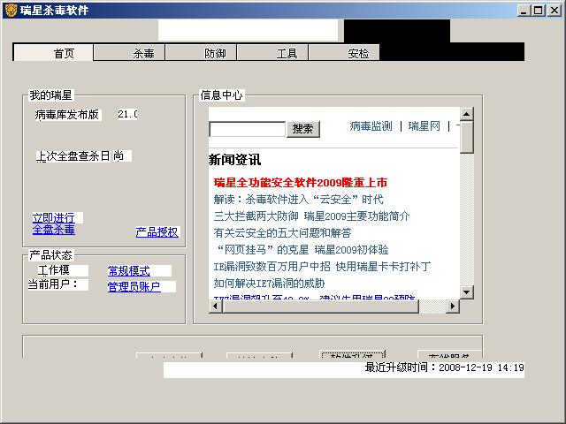 昨天通过在瑞星升级网上下载2009版升级文件升级后,