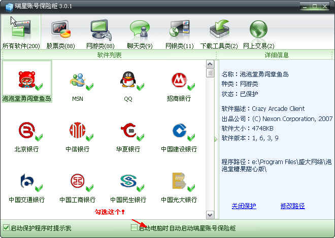 怪事,08版里我的任务栏里没有显示账号保险柜,但每次启动受保护的程序都有对话框弹出表示也保护,现在升级了反而在任务栏出现了保险柜图标及进程里有了程序,