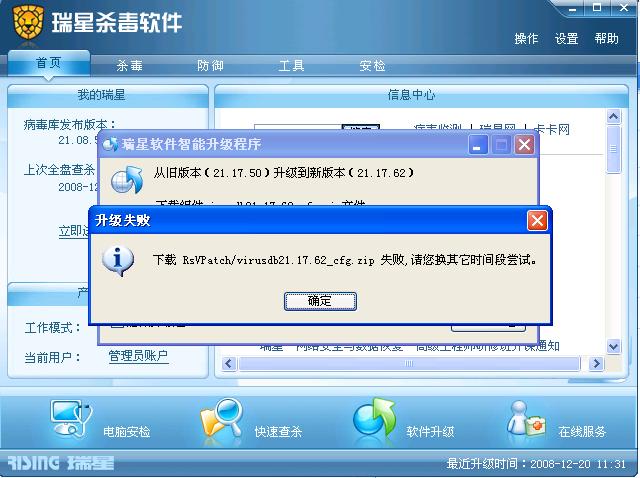 已升到2009最新版了.为什么在升级病毒库过程总提示错误呀?