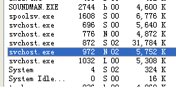 正常情况下,见附件截图中的svchost.exe的cpu占用都只有几%
