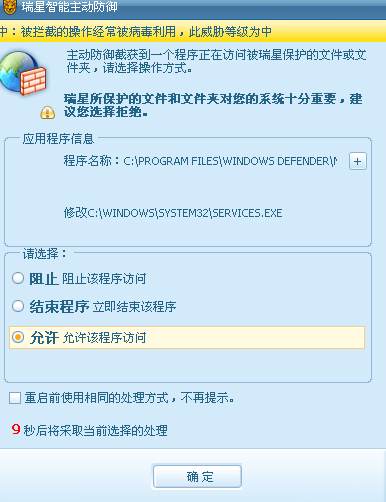 瑞星2009杀毒软件误报Windows Defender为危险程序