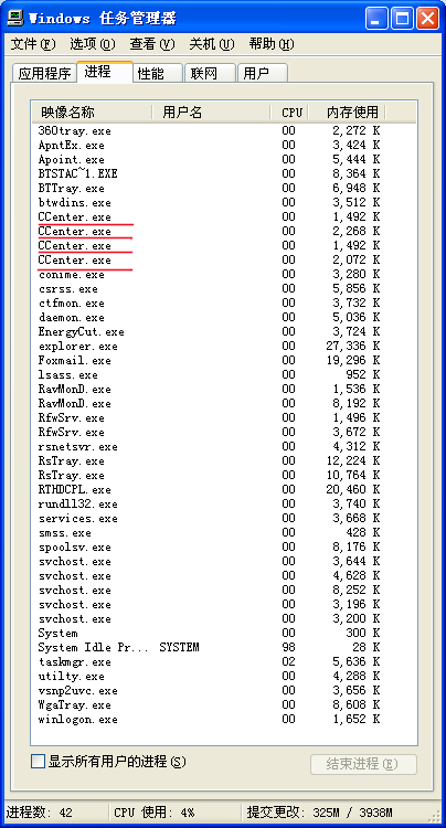 lz可以通过瑞星软件得查看进程信息功能查看ccenter进程对应得程序都是什么