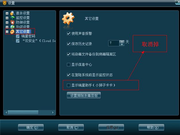 新版本没认真看,就上来投诉了!!这个版本是有这个关闭功能!我是首次来这个社区,也不是有时间常来,做为一个瑞星近10年的老客户,我还是深情的祝愿瑞星越做越好。当然也再次希望:开发更新这个软件的时候,要时刻记得,简单,实用,强大的原则,不要搞些太花俏的东东!!毕竟客户用瑞星的时候,哪个人也是没心情看那个狮子动画片,况且浪费电脑资源,影响查杀速度!!!如果真的对你们有点帮助,也没白费我的时间。