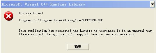 在开机时有这个提示,不知是什么原因,后面仔细看了,好像是瑞星的程序,所以修复了,但在修复时有三次都出现这个提示,第一次提示我继续就说什么安装通用库错误,后面有两次,不知是什么原因?现在每次开机都有这个,怎么解决?