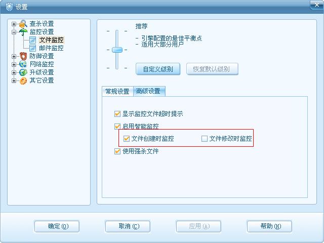 打开瑞星,设置,详细设置,监控设置,文件监控内,设置成如图样式试一试呢?