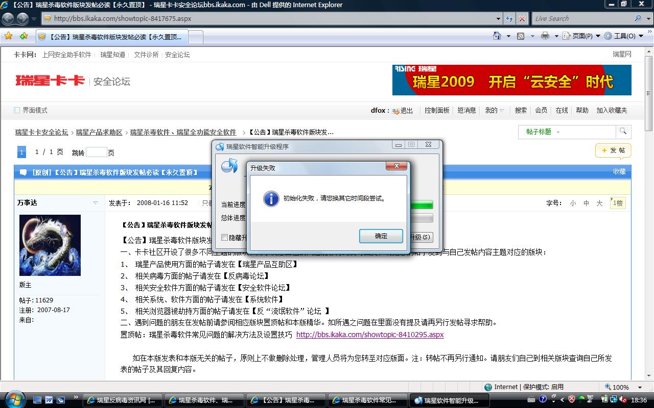 求助阿求助,机器重装后用vista系统,结果显示初始化失败...