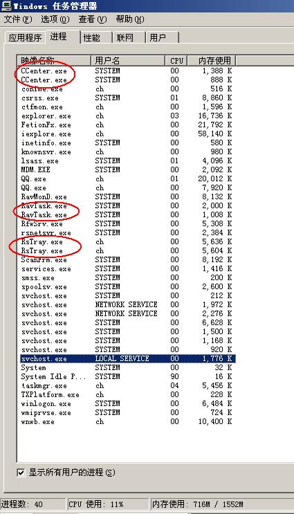 2009瑞星增加了很多功能,但相对应的进程也增加了不少,有些新的功能增加进程那是在所难免,但有些属于杀毒和防火共用的进程可否将其合二为一进行合理的优化呢?下图红色选中的方框中,相同的进程一个是瑞星杀毒的,一个是防火的: