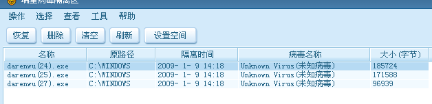 昨天发现系统登陆慢进行全盘杀毒时发现的,瑞星提示我选择了直接删除了,今天打开隔离工具看到,就发上来给大家看看了
