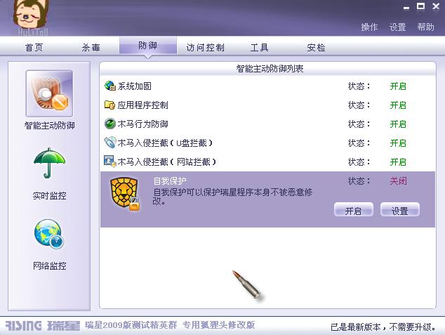 二这是一个方法,升级前在防御中关闭自我保护,然后升级,如图