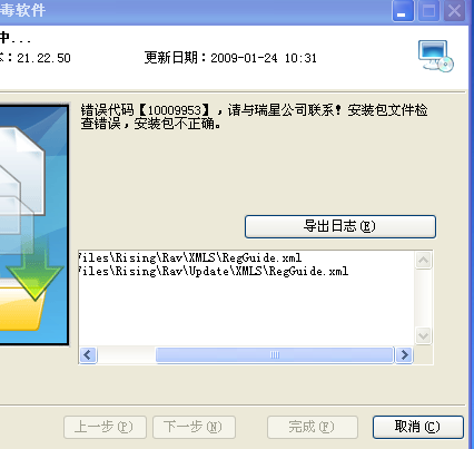 错误代码 10009953 请与瑞星公司联系 安装包文件检查错误 安装包不正确