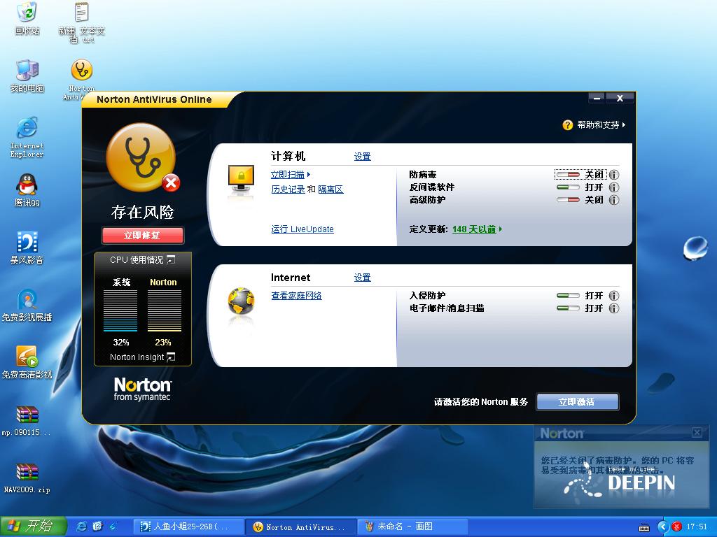 在这,只要关闭诺顿的文件监控 它马上报警!
