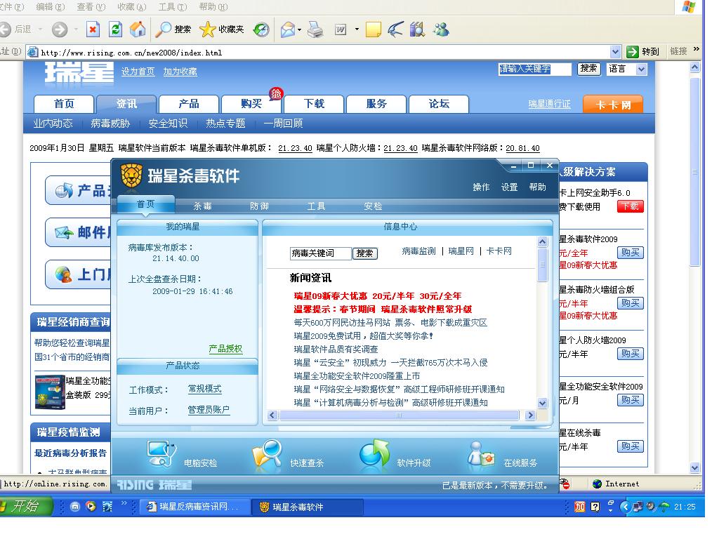 回复:瑞星杀毒软件升级问题?