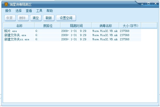 看瑞星的历史记录,所有病毒..选中后在下面可以到瑞星网站看病毒的档案..
