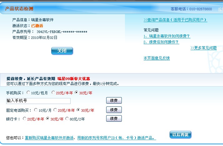 此问题已反馈瑞星公司了,请网友等候处理结果,也可随时升级产品观察情况。