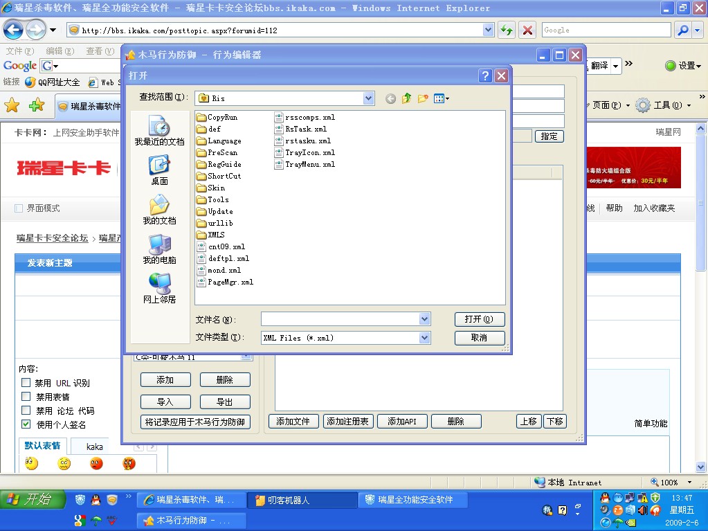 xml是一种文件格式而已 ~~~ 只不过瑞星的自定义规则部分是以xml形式存在的 但不是所有的xml都是 规则的~~~~