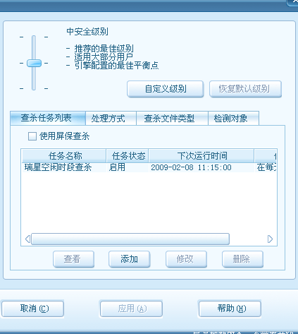 我是用下载版的,已经用了大概两年了,现在已经升级到最新版本了,我点右下角的绿伞显示是21.24.40.可自从升级到2009以后我发现我原来设置的空闲时段自动杀毒不能用了,现在想要杀毒都是手动的,希望大大们给我解决!