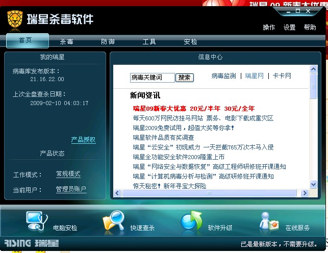 楼主的是瑞星杀毒软件2009不是全功能2009