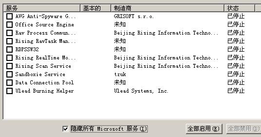 然后重启电脑,你会发现所有瑞星的东东都不启动了,哈哈,而且在进程控制中有关瑞星的可以随时停止(基本上这时已经没有多少了)