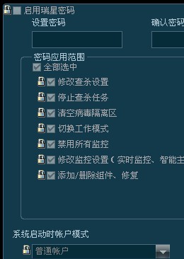 我的瑞星详细设置里的任务全部锁定了,怎么解锁呀?但是还是能杀毒,就是改设置改不了了。