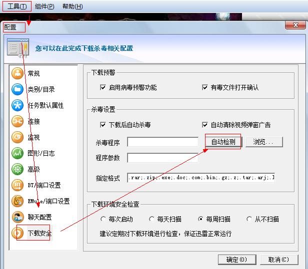 自动的话如果楼主用迅雷,设置 里有病毒查杀设置。
