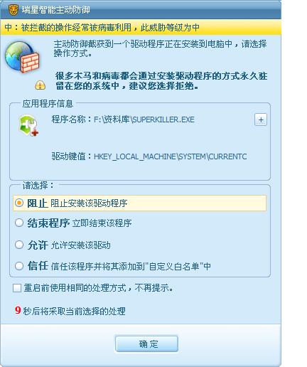 瑞星主动防御认为是可疑程序,并不是说这一定是木马。只要点击“信任”就可疑了。