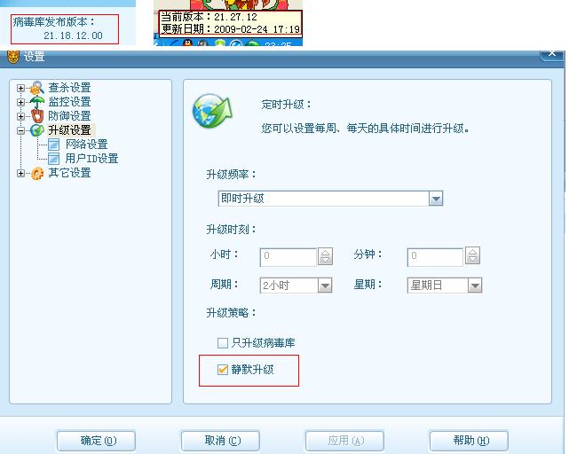 谢谢各位,真的感谢,大家说的都对的,我看的那个是病毒版本号,鼠标放在小雨伞的地方才能看到当前的软件版本号,是的,我是设置成了默认升级,所以我一点就已经是最新版本了,呵呵谢谢大家,原来是自己没弄明白~嘿嘿,不好意思了~