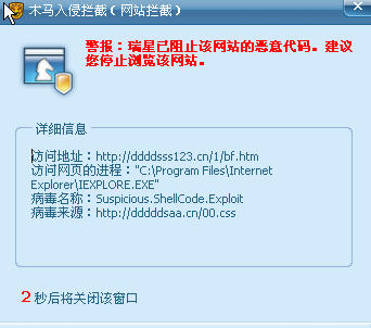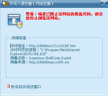 打开任任何一个网页包括象新浪网等,瑞星出现下列对话框