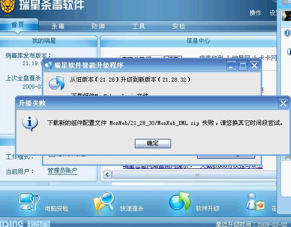 将瑞星安装目录下的temp文件夹清空后,再升级试试。