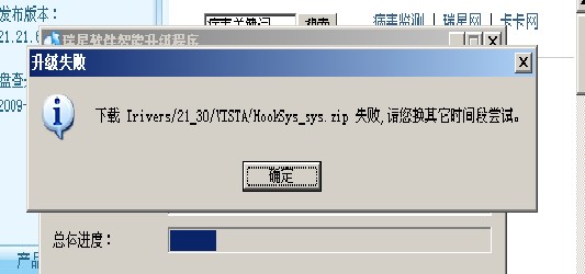 每次升级瑞星都出现这个提示,导致不能正常升级,怎么处理?换了N次时间段都一样。