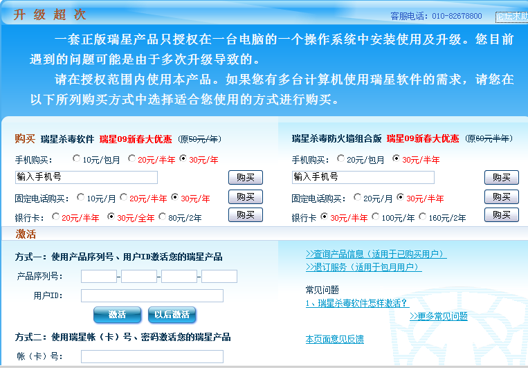 回复:说我的瑞星序列号多次升级!