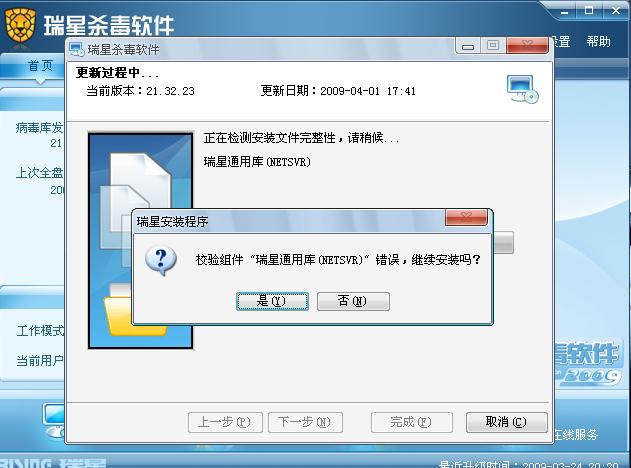 刚才升级瑞星,升级时出现下图,高手帮忙看看,这种情况如何处理?