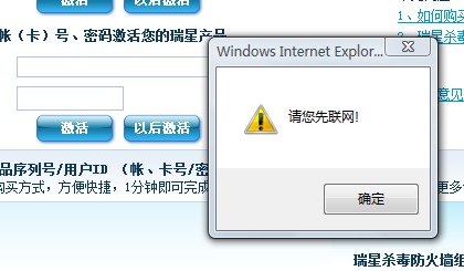 买了瑞星下载版去激活 每次都跳出 请您联网