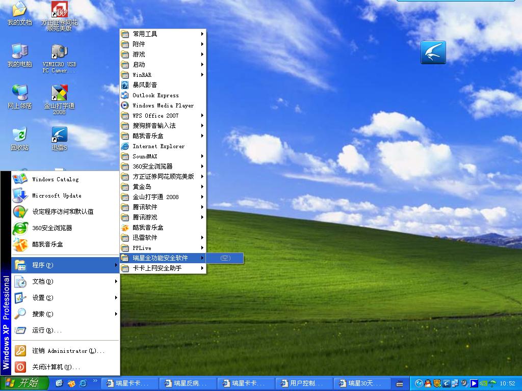 安全模式,【开始】【运行】输入regedit进入注册表,打开注册表里面HEKY_LOCAL_MACHINE找到SOFTWARE文件里面的rising文件夹删除里面的rfw文件夹,再到c盘(瑞星的安装目录下c:\Program Files\Rising)删除rising文件夹下的rfw文件夹
