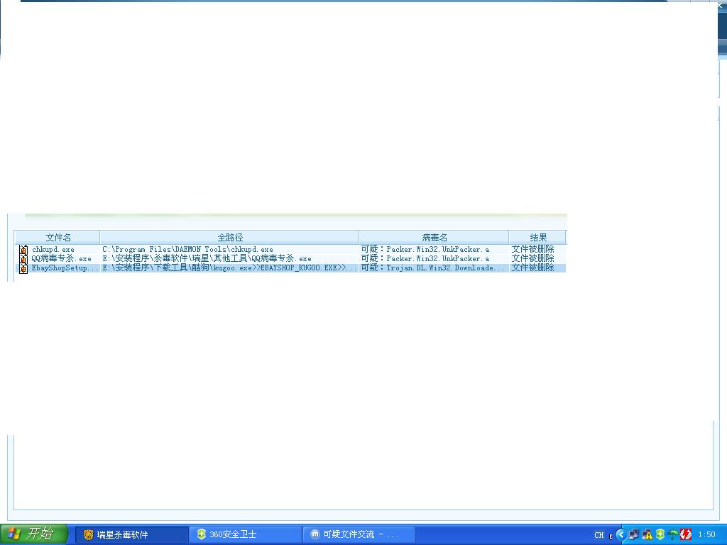 三个可凝文件为:虚拟光驱DAEMON中的一个文件;瑞星QQ病毒专杀;酷狗.