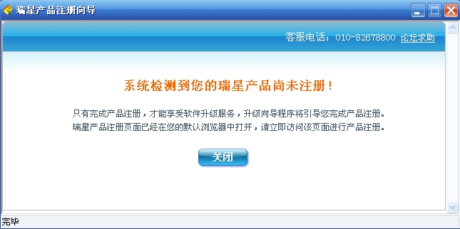 只有完成产品注册,才能享受软件升级服务,升级向导程序将引导您完成产品注册。 瑞星产品注册页面已经在您的默认浏览器中打开,请立即访问该页面进行产品注册。”并且弹出网站----“出错拉” 3个字谁帮帮我,到底是怎么回事????