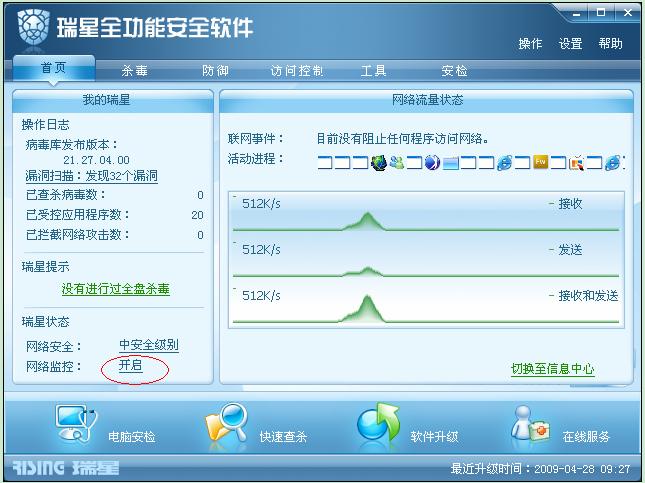 [求助] 瑞星全功能安全软件如何快速开启和关闭防火墙功能.